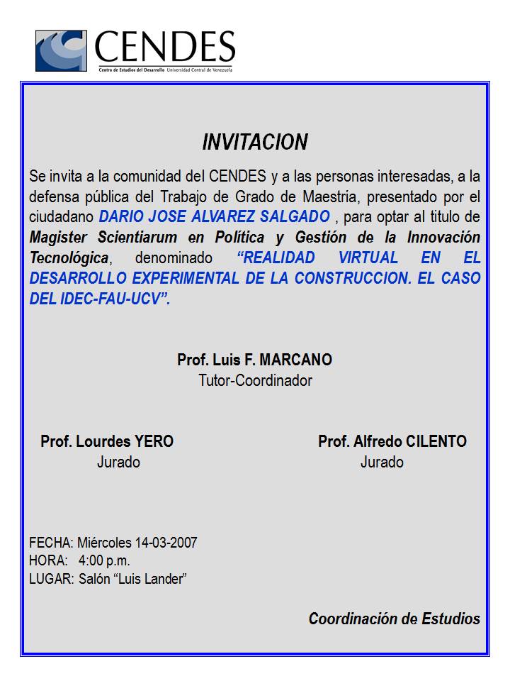 A través del tiempo, la temática de Arquitectura Virtual ha ido gradualmente cobrando una importancia progresiva. A ello han contribuído no sólo el acelerado incremento tecnológico de capacidad, flexibilidad y evolución sistemática de la Informática aplicada al aprovechamiento de las tecnologías de la Información y de la Comunicación (TIC) a través del desarrollo y uso de herramientas cada vez más poderosas y universales sino, con la misma o igual importancia, la evolución conceptual y práctica experimentada en el área de las comunidades virtuales y la sociedad nomádica ( Wireless) así como el desarrollo de nuevos enfoques en CAD, CAAD, SIG entre otros. Todo lo cual representará un importante marco para un fructífero intercambio en ideas, avances, posiciones y experiencias sobre tan importante temática programado oportunamente.
