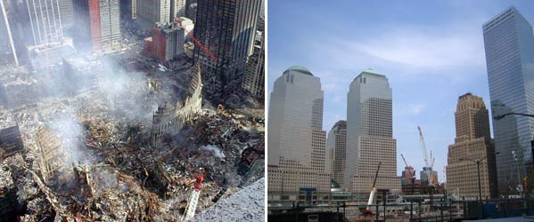 En la imagen: La Zona Cero en 2001 y actualmente. (Fuente: Wikipedia)