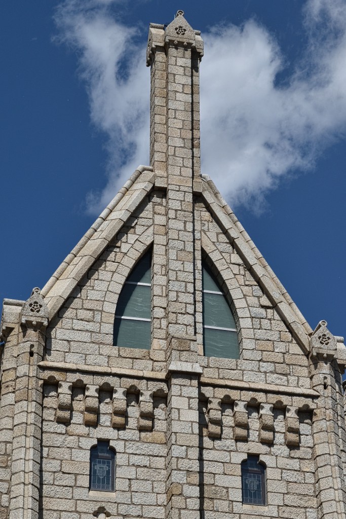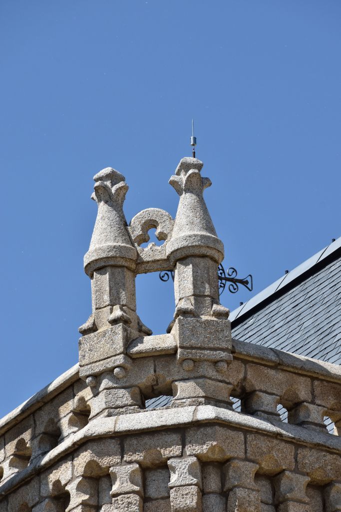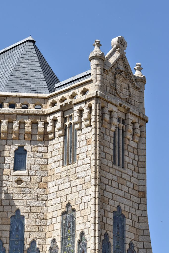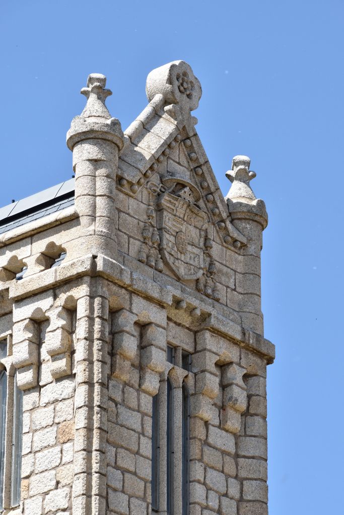 Es un edificio de estilo neogótico, construido con granito del Bierzo, con rasgos de castillo, templo y palacete señorial, circundado por un foso.