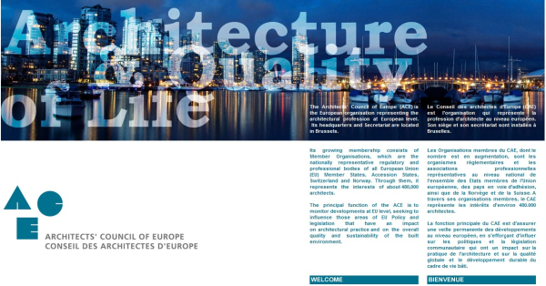The Architects’ Council of Europe (ACE) is the European organisation representing the architectural profession at European level. Its headquarters and Secretariat are located in Brussels.