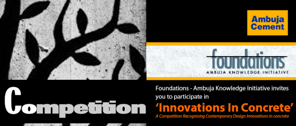 Foundations – Ambuja Knowledge Centre is inviting professional, architects, engineers and designers from around the globe to take part in the Innovations in Concrete Competition. A platform to explore and utilize the versatility of concrete in generating innovative architectural masterpieces, structures and systems; leading to ideas that unveil the potential of concrete addressing various functions and appearances in this material. The competition seeks projects that demonstrate an ability to broaden conventional notions about concrete building and also balance aesthetic, innovative use and economic performance of concrete.