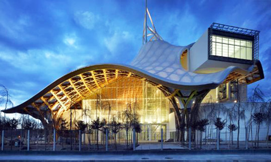 Construction is nearly complete on Centre Pompidou-Metz, an incredible new extension of the original Centre Pompidou modern art museum in Paris. Designed by architects Shigeru Ban and Jean de Gastines, the elegantly sloping structure takes inspiration from the technical properties of Chinese hats and bridges. The building is topped with a curvaceous roof that does a remarkable job of shielding it from the elements while opening up an expansive volume of space dedicated to the arts.