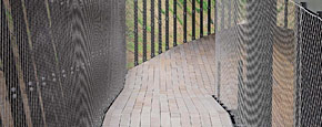 Telón digital, de la artista Pae White, con imágenes de papel de aluminio que reflejan el auditorio.