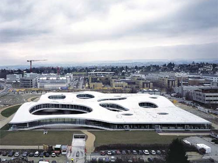 Entrada. El Centro está ubicado al ingreso del campus, sobre la carretera que une Lausana con Ginebra. Clarín.com, Suplemento ARQ