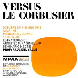 Versus Le Corbusier toma prestado en el título la preposición latina versus, palabra tomada de la jurisprudencia inglesa en el sentido siempre de confrontación, pero cuyo significado real es “hacia a”, “ir hacia”. De esta manera, Hacia Le Corbusier o Ir hacia Le Corbusier, podría rememorar en el título el manifiesto escrito en 1923 por el maestro, Vers une Architecture, en el que se prendía mostrar las claves de una arquitectura aún por llegar, y en la que hoy estamos completamente inmersos.